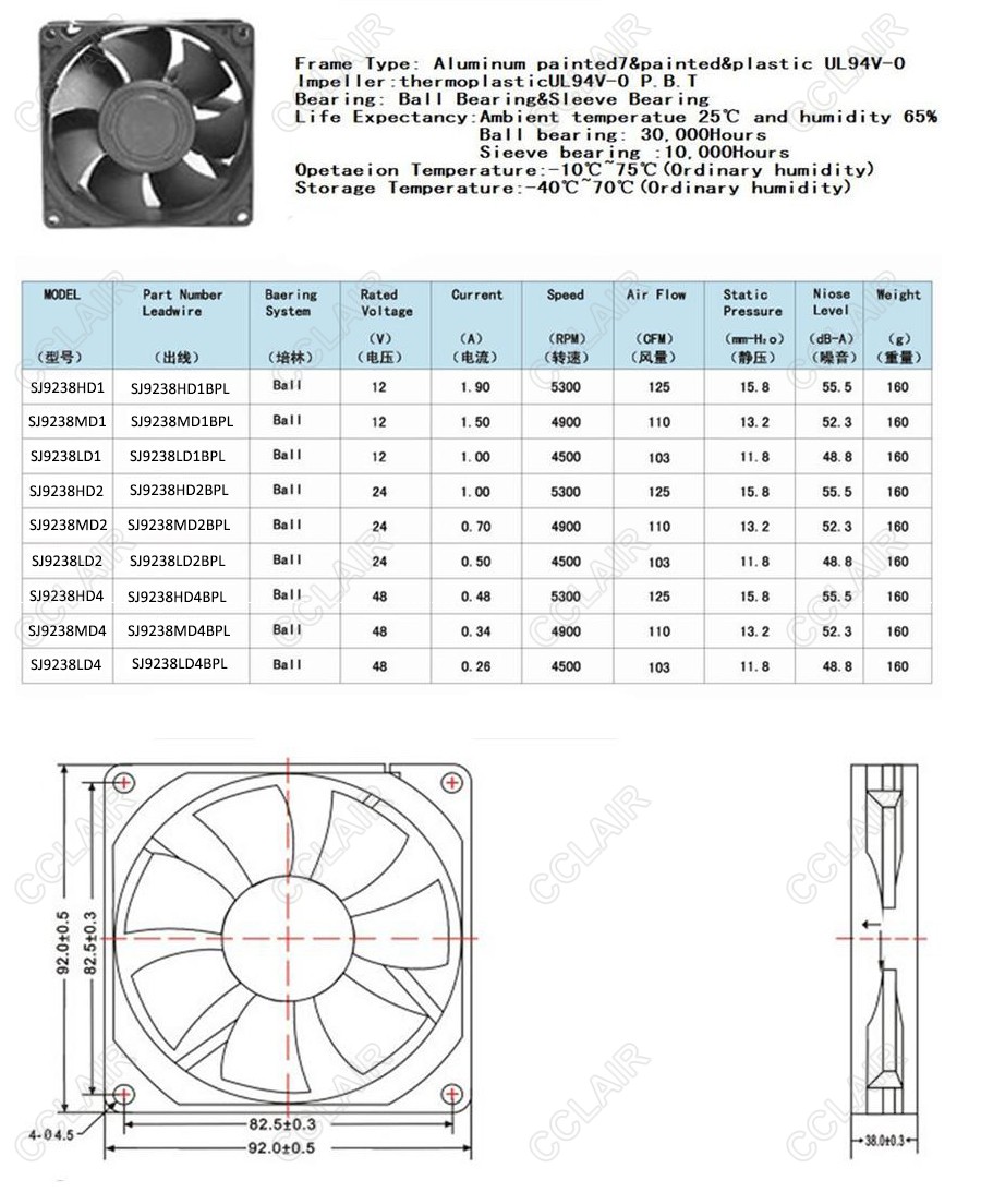 SJ9238HD1,SJ9238MD1,SJ9238LD1,SJ9238HD2,SJ9238MD2,SJ9238LD2,SJ9238,SANJI DC軸流風機 |