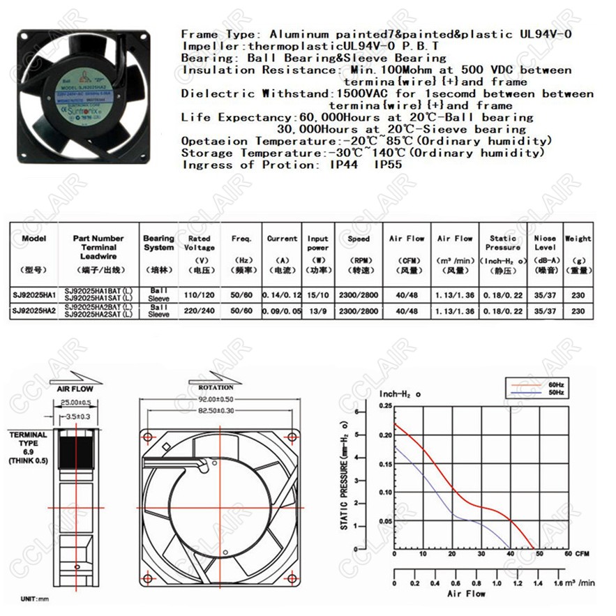 SJ92025HA1,SJ92025HA2,SANJU 軸流風機