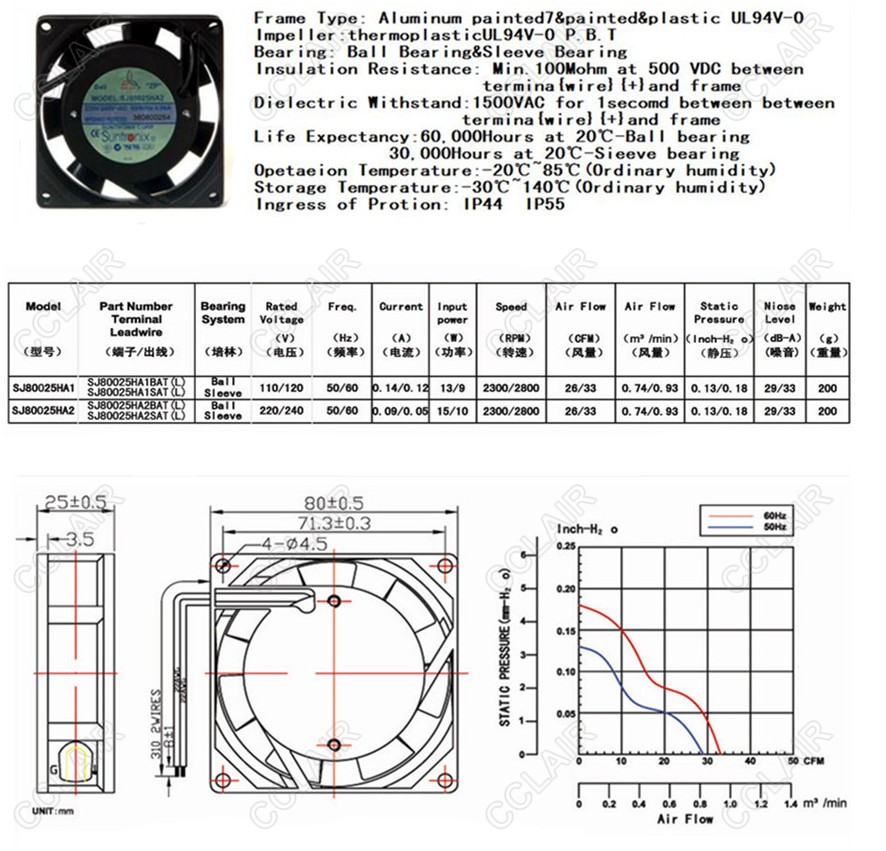 SJ80025HA1,SJ80025HA2,SANJU 軸流風機