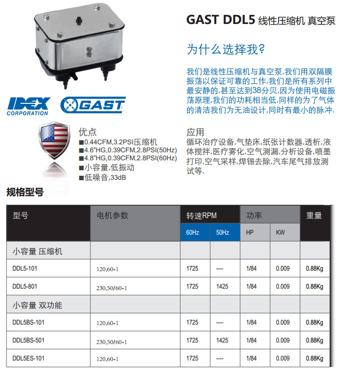 DDL5-101,DDL5-801,DDL5BS-101,DDL5BS-501,DDL5ES-101,線性壓縮機(jī)/真空泵