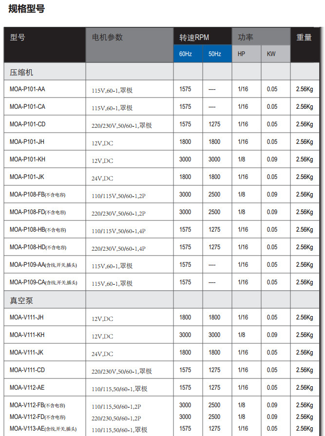 MOA-P101-AA,MOA-P108-HD,MOA-P109-AA,MOA-V111-KH,隔膜式真空泵/壓縮機(jī) |