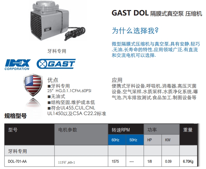 DOL-701-AA,隔膜式真空泵/壓縮機(jī)