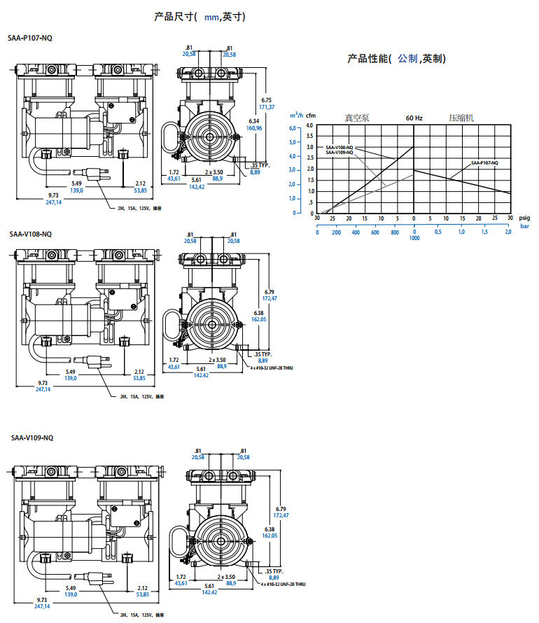 SAA-P107-NQ,SAA-V108-NQ,SAA-V109-NQ,搖擺活塞式壓縮機/真空泵