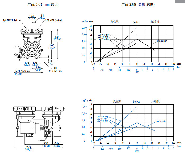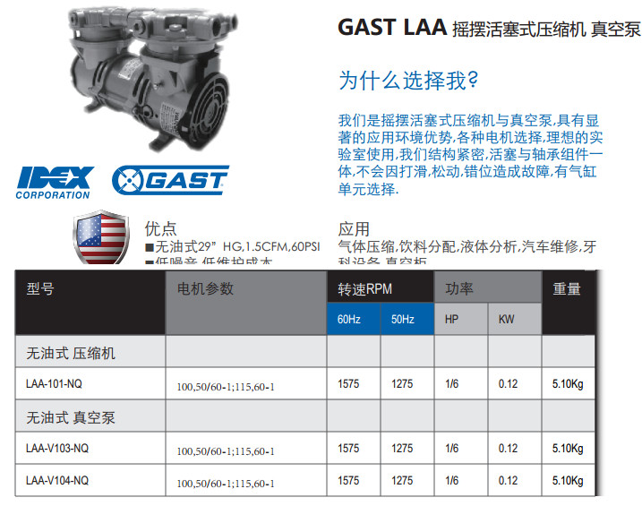 LAA-101-NQ,LAA-V103-NQ,LAA-V104-NQ,搖擺活塞式壓縮機/真空泵