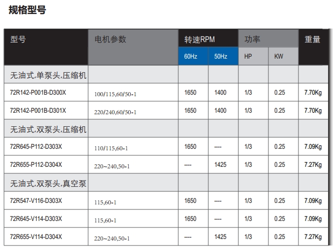 72R142,72R645,72R655,72R547,72R645,72R655,搖擺活塞式壓縮機/真空泵