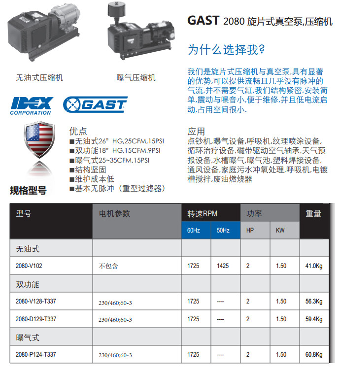 2080-V102,2080-V128-T337,2080-D129-T337,2080-P124-T337,旋片式壓縮機(jī)/真空泵 |
