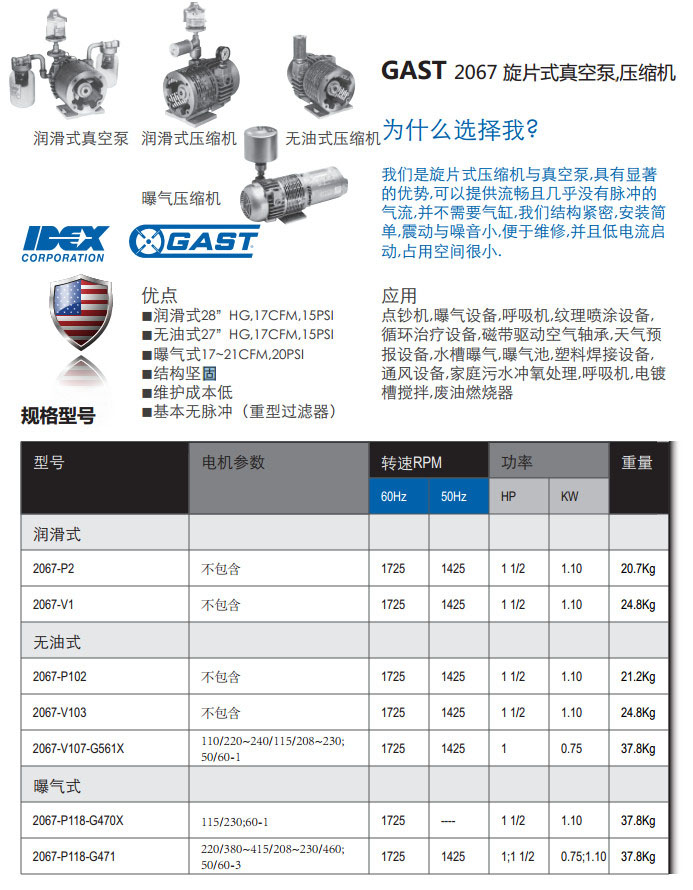2067-P2,2067-V1,2067-P102,2067-V1032067-V107-G561X,旋片式真空泵/壓縮機