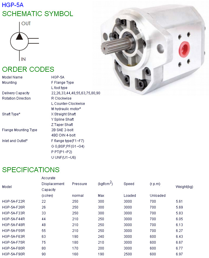 HGP-5A-F22R,HGP-5A-F26R,HGP-5A-F33R,HGP-5A-F44R,HGP-5A-F48R,HYDROMAX齒輪泵