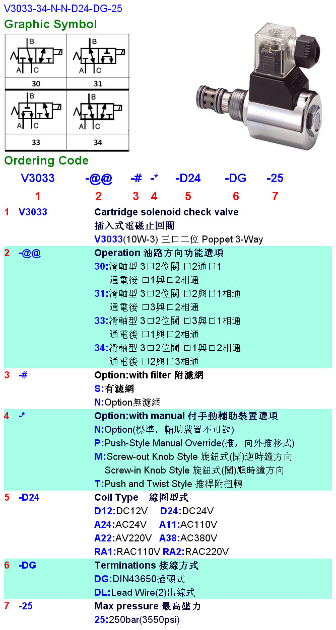 V3033-30,V3033-31,V3033-33,V3033-34,V3033-34-N-N-D24-DG-25,HYDROMAX插入式電磁止回閥 |