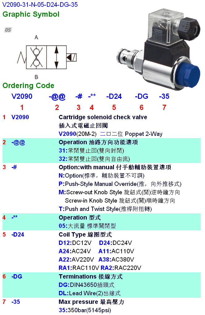 V2090-31-N-05-D24-DG-35,V2090-31-N,V2090-31-P,V2090-31-M,V2090-31-T,HYDROMAX插入式電磁止回閥 |