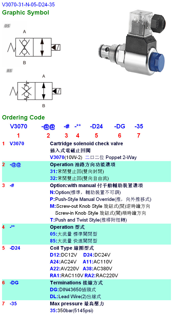 3070-31-N-05-D24-35,V3070-32-N-85,V3070-31-P-05,V3070-32-P-85,V3070-31-M-05,HYDROMAX插入式電磁止回閥