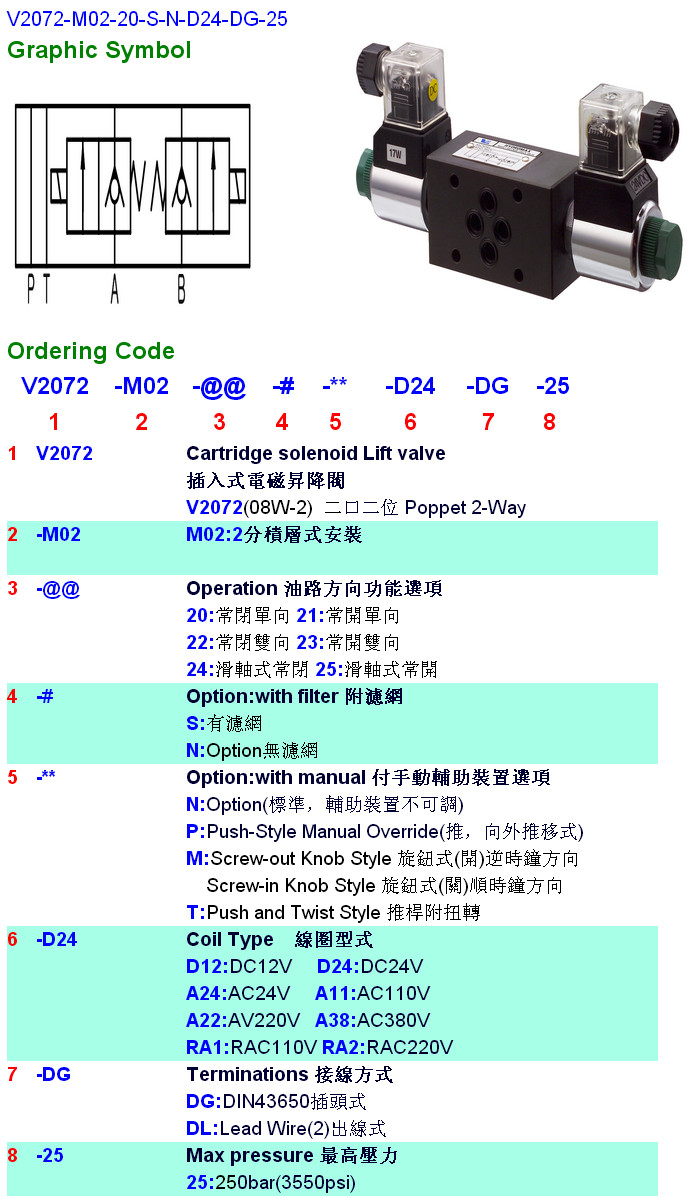V2072-M02-21,V2072-M02-22,V2072-M02-23,V2072-M02-24,V2072-M02-20-S-N-D24-DG-25,HYDROMAX插入式電磁升降閥 |