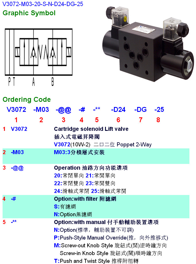 V3072-M03-21,V3072-M03-22,V3072-M03-23,V3072-M03-24,V3072-M03-20-S-N-D24-DG-25,HYDROMAX插入式電磁升降閥 |