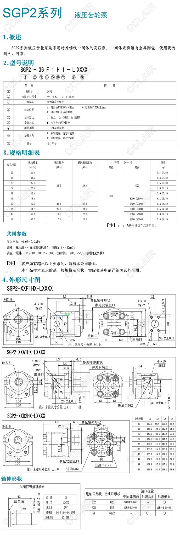 SGP2-23,SGP2-32,SGP2-36,SGP2-44,SGP2齒輪泵