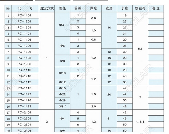PC-1104,PC-1204,PC-1304,PC-1404,PC-1106,PC-1206,PC-1306,PC-1108,PC-2406,管夾
