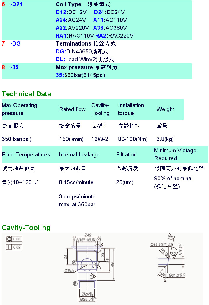 V8074-T06-02,V8074-T06-05,V8074-T06-06,V8074-T06-07,V8074-T06-01-N-05-D24-DG-35,HYDROMAX插入式電磁升降閥