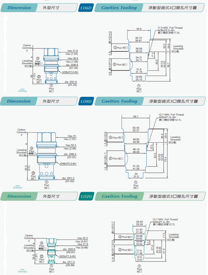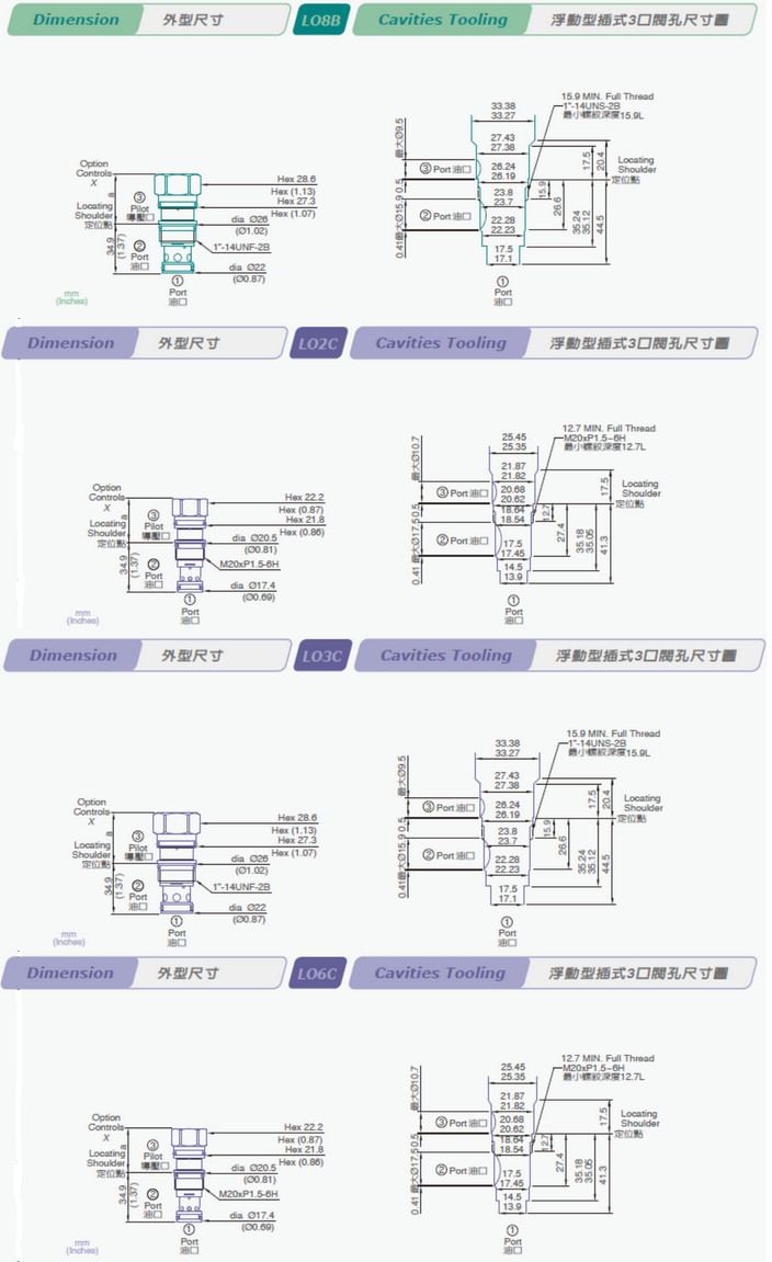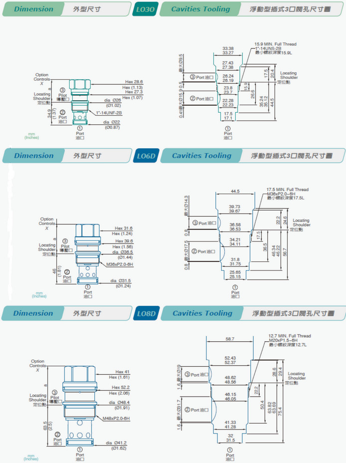 LO2A,LO2B,LO2C,LO3A,LO3B,LO3C,LO3D,LO3O,LO6A,LO6B,LO6C,LO6D,LO6O,LO8A,LO8B,LO8C,HYDROMAX插式常開型邏輯閥 |