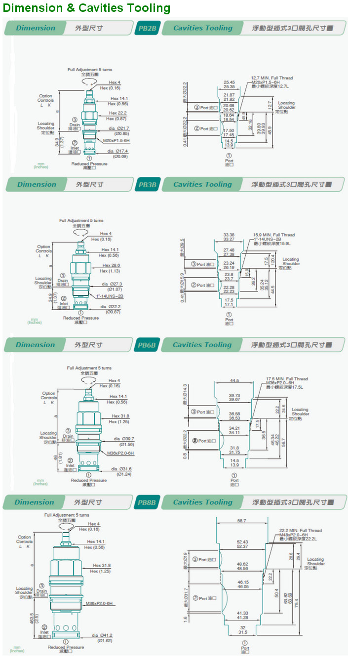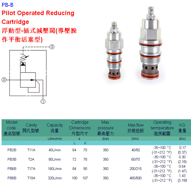 PB2B-T11A-LAN,PB3B-T2A-KAN,PB6B-T17A-LBN,PB8B-T19A-KBN,PB2B-T11A-LCN,PB3B-T2A-KCN,HYDROMAX插式減壓閥