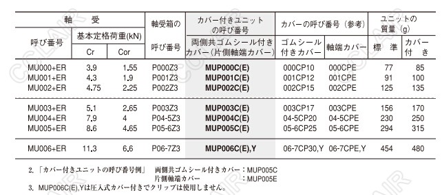 MUP000,MUP000C,MUP000E,MUP001,MUP001C,MUP001E,MUP006EY,MUP,軸承