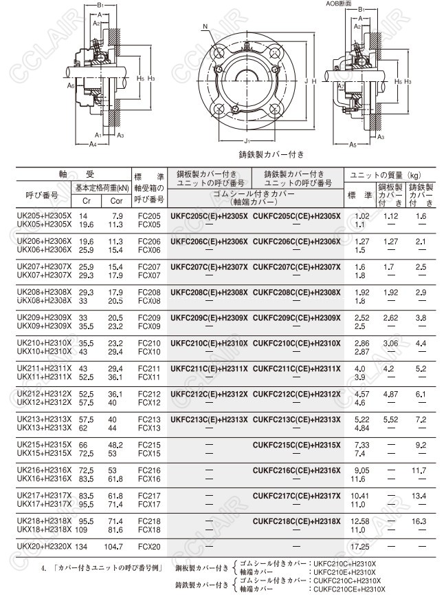 UKFC205+H2305X,UKFC206C+H2306X,UKFC207E+H2307X,UKFC+H,軸承