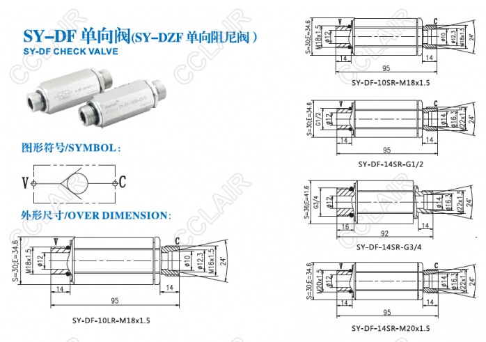 SY-DF-10LR-M18*1.5,SY-DF-10SR-M18*1.5,SY-DF-14SR-G1/2,SY-DF-14SR-G3/4,SY-DF,單向閥 |