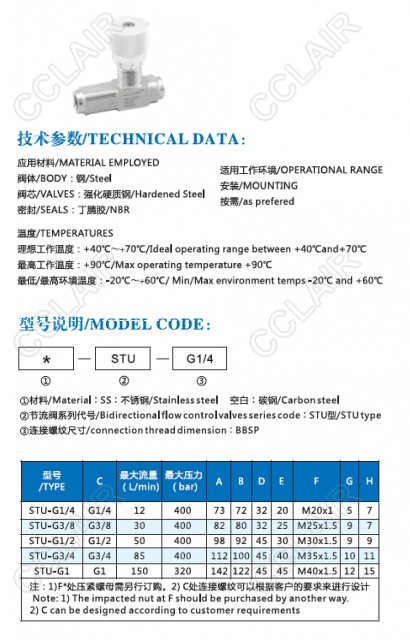 STU-G1/4,STU-G3/8,STU-G1/2,STU-G3/4,STU-G1,STU,單向節(jié)流閥