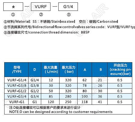 VURF-G1/4,VURF-G3/8,VURF-G1/2,VURF-G3/4,VURF-G1
