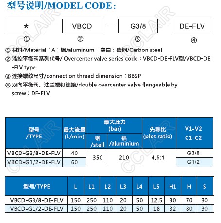 VBCD-G3/8-DE-FLV,VBCD-G1/2-DE-FLV,VBCD-DE-FLV,雙向平衡閥