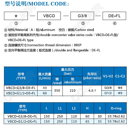 VBCD-G3/8-DEFL,VBCD-G3/8-DE-FL,VBCD-G3/8-DE-FL,VBCD-G1/2-DE-FL,VBCD-DE-FL,雙向平衡閥 |