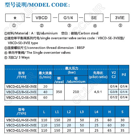VBCD-G1/4-SE-3VIE,VBCD-G3/8-SE-3VIE,VBCD-G1/2-SE-3VIE,VBCD-SE-3VIE,單向平衡閥