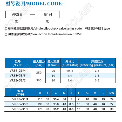 VRSE-G1/4,VRSE-G3/8,VRSE-G1/2,VRSE,單向液壓鎖