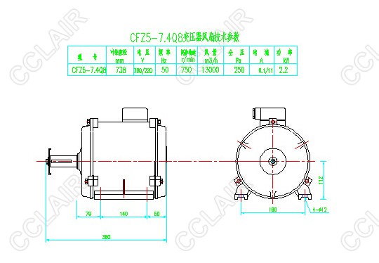 前吹(空氣由電動機(jī)流向葉輪) |