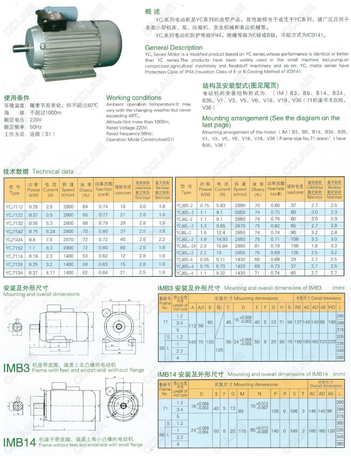 YC27112,YC27122,YC27132,YC27142,YC27142A,YC27152,YC27114,YC2,單相電容起動異步電動機