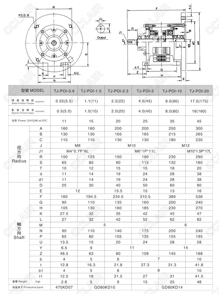 TJ-POI-0.6,TJ-POI-1.5,TJ-POI-2.5,TJ-POI-5,TJ-POI-10,TJ-POI-20,TJ-POI,單法蘭電磁離合、剎車器組