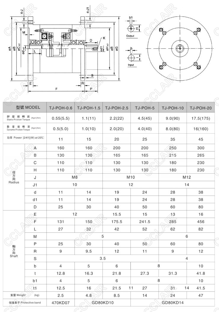 TJ-POH-0.6,TJ-POH-1.5,TJ-POH-2.5,TJ-POH-5,TJ-POH-10,TJ-POH-20,TJ-POH,雙法蘭電磁離合、煞車器組 |