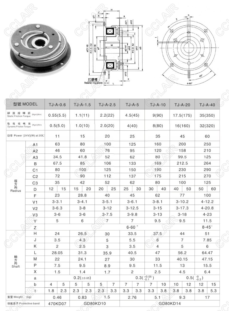 TJ-A-0.6,TJ-A-1.5,TJ-A-2.5,TJ-A-5,TJ-A-10,TJ-A-20,TJ-A-40,TJ-A,干式單板電磁離合器 |