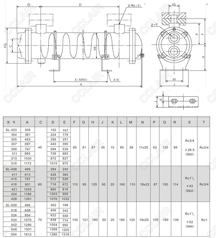 2、冷卻管采用外表軋制翅片紫銅管,產(chǎn)品體積小,重量輕,熱交換面積大。