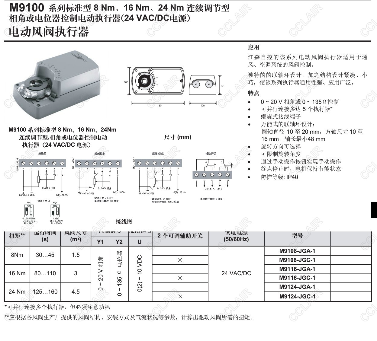 M9108-JGA-1,M9108-JGC-1,M9116-JGA-1,M9116-JGC-1,M9124-JGC-1,M9100,電動(dòng)風(fēng)閥執(zhí)行器