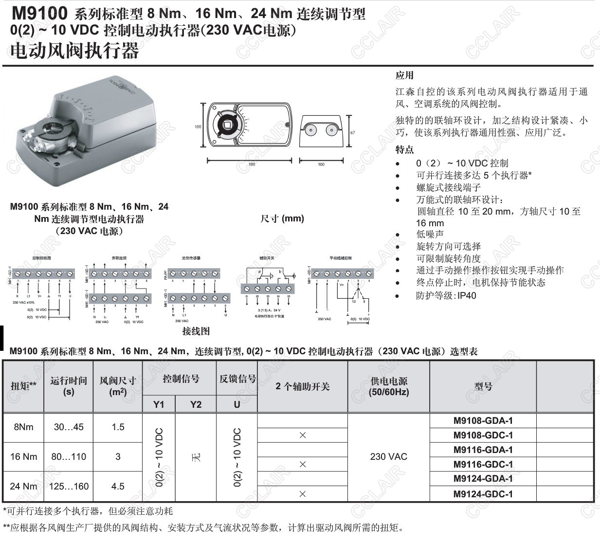 M9108-GDA-1,M9108-GDC-1,M9116-GDA-1,M9116-GDC-1,M9124-GDC-1,M9100,電動(dòng)風(fēng)閥執(zhí)行器
