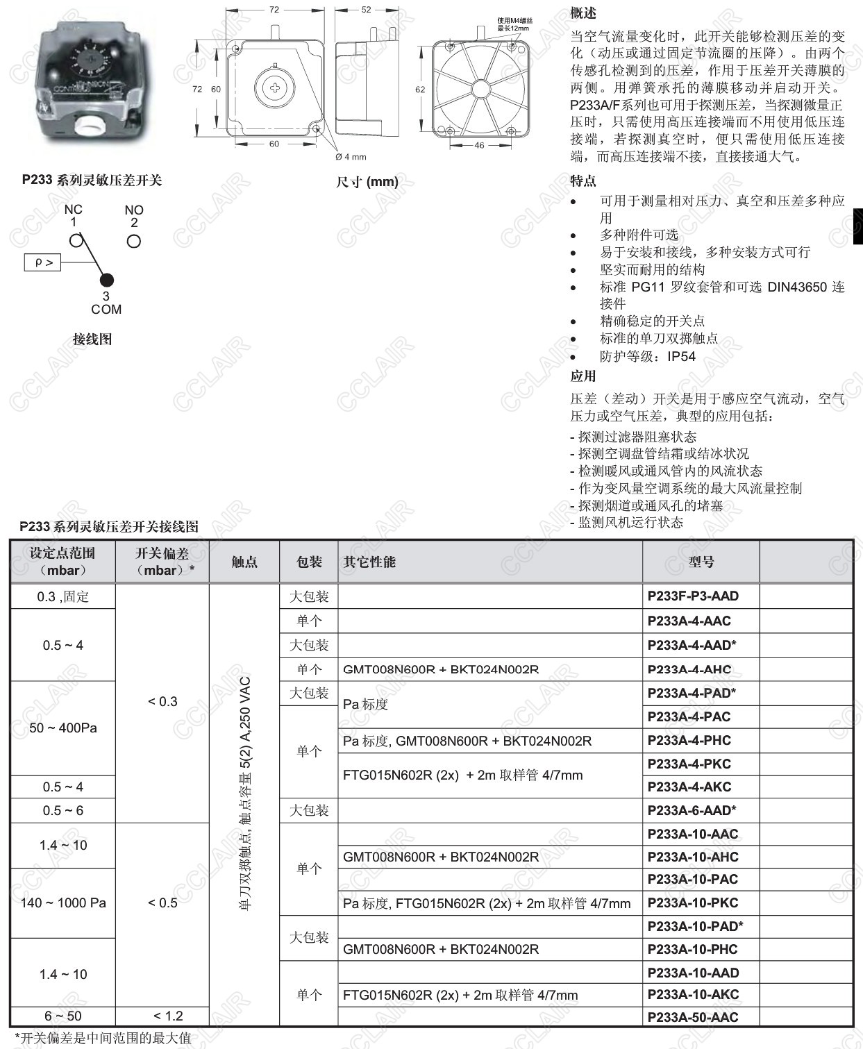 P233F-P3-AAD,P233A-4-AAC,P233A-4-AAD,P233A-4-AHC,P233A-4-PAD,P233,靈敏壓差開關(guān)
