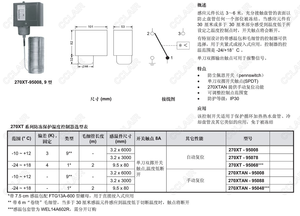 270XT-95008,270XT-95078,270XT-95068,270XTAN-95008,270XTAN-95088,270XT,防凍保護(hù)溫度控制器