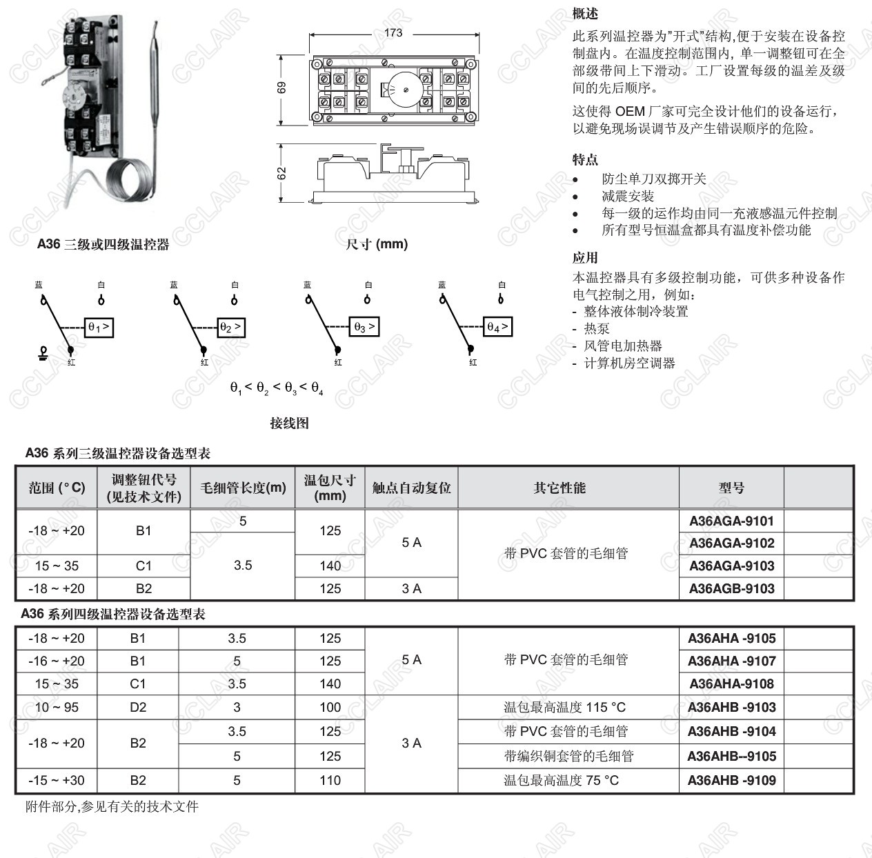 A36AGA-9101,A36AGA-9102,A36AGA-9103,A36AGB-9103,A36AHA-9105,A36,三級及四級溫控器 |