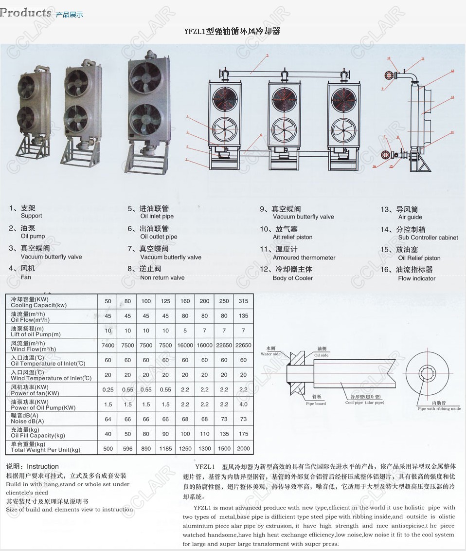 YFZL1-50,YFZL1-80,YFZL1-100,YFZL1-125,YFZL1-160,YFZL1-200,YFZL1,強(qiáng)油循環(huán)風(fēng)冷卻器