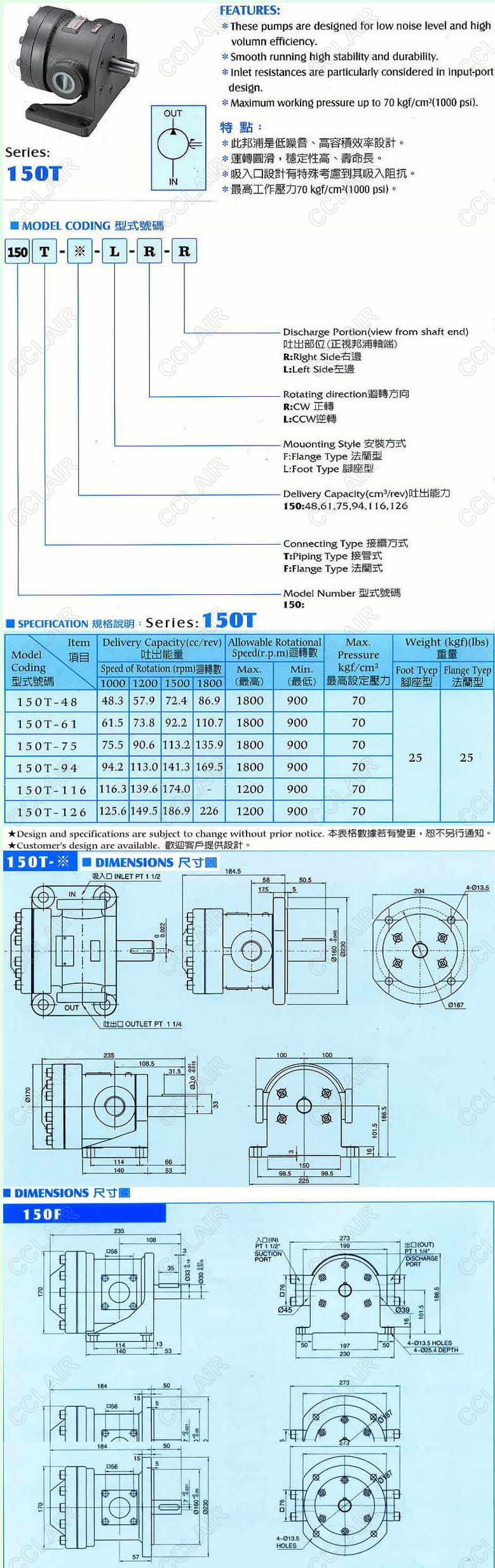 150T-48-F-R-R,150T-75-L-R-L,150F-126-L-L-L,150T-116-F-R-R,150T,固定容量泵浦YEESEN