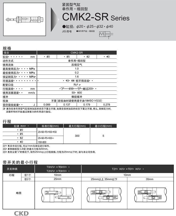 CMK2-SR-00-20-25,CMK2-SR-00-20-50,CMK2-SR-00-20-75,CMK2-SR-00-20-100,CMK2-SR-00-20-150,CKD緊固型氣缸