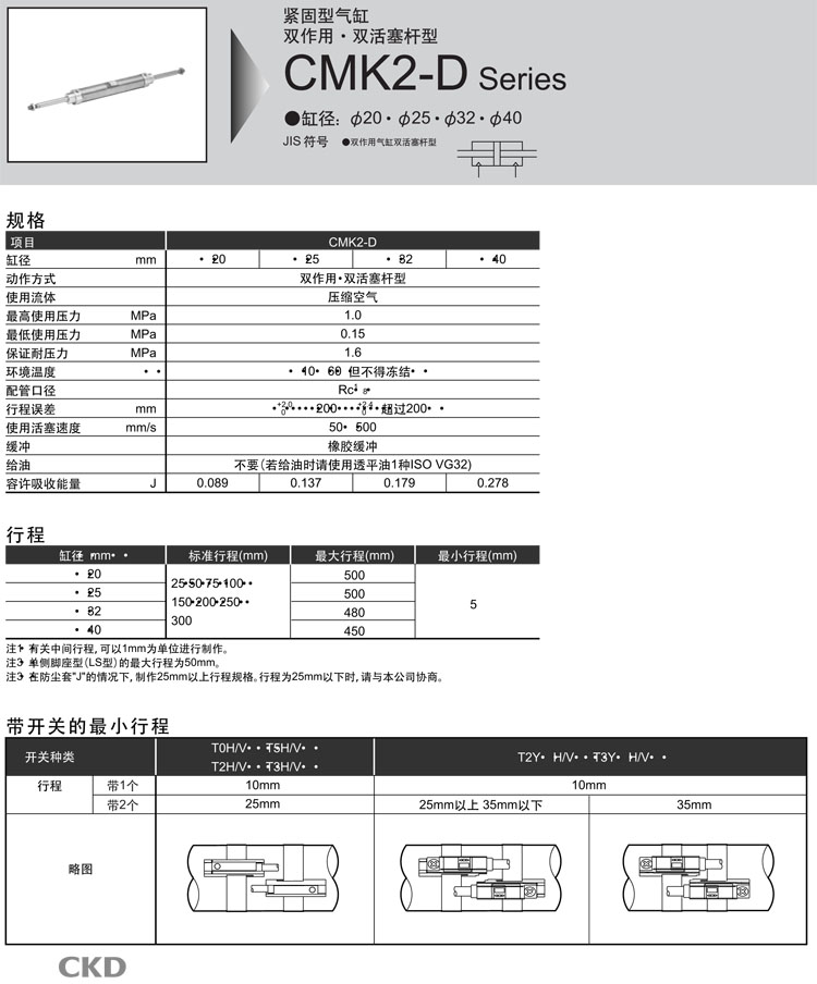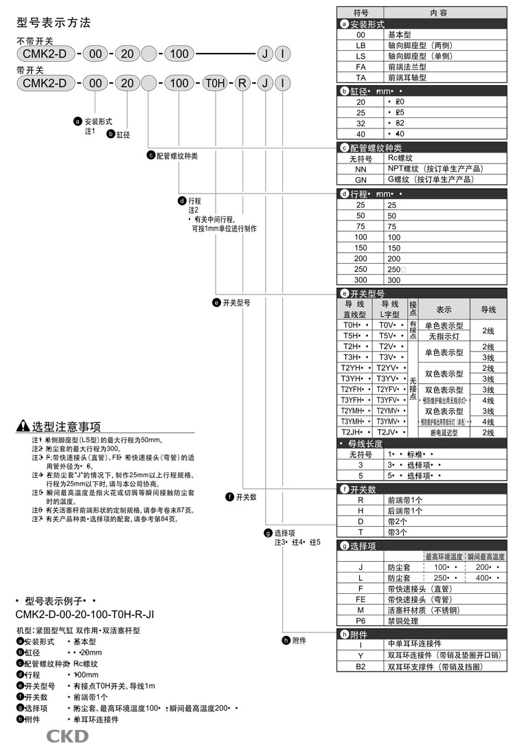 CMK2-D-00,CMK2-D-LB,CMK2-D-LS,CMK2-D-FA,CMK2-D-TA,CMK2-D-TA-20-300,CKD緊固型氣缸