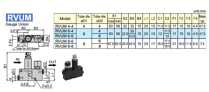 RVUM4-4,RVUM6-4,RVUM6-6,RVUM8-6,RVUM8-8,PISCO壓力控制器
