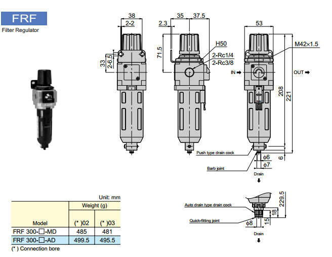 FRF300-02-MD,FRF300-02-AD,FRF300-03-MD,FRF300-03-AD,PISCO過濾減壓閥