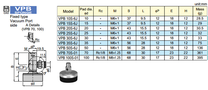VPD10S-6J,VPD15S-6J,VPD20S-6J,VPD25S-6J,VPD30S-6J,VPD50S-6J,VPD70S-01,VPD100S-01,VPD35S-6J,PISCO真空吸盤 |