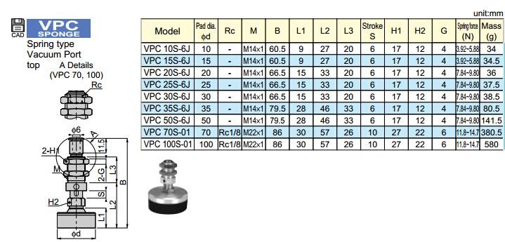 VPC10S-6J,VPC15S-6J,VPC20S-6J,VPC25S-6J,VPC30S-6J,VPC50S-6J,VPC70S-01,VPC100S-01,VPC35S-6J,PISCO真空吸盤(pán)